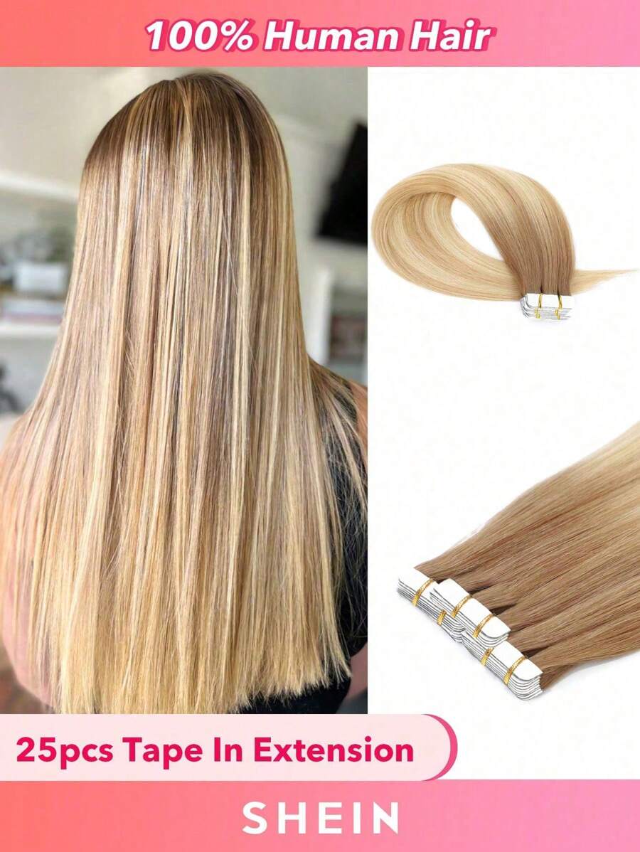 25Pcs Tape In Straight Colored Human Hair Extensions Real Extension For Women Daily Use Real Easy Wear Natural Looking