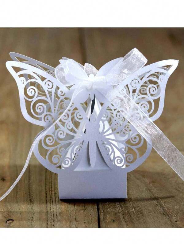 25pcs Wedding Candy Boxes Couple Design Luxury Party Wedding Favor Ribbon Candy Boxes Gift Box Table Decorations (White)