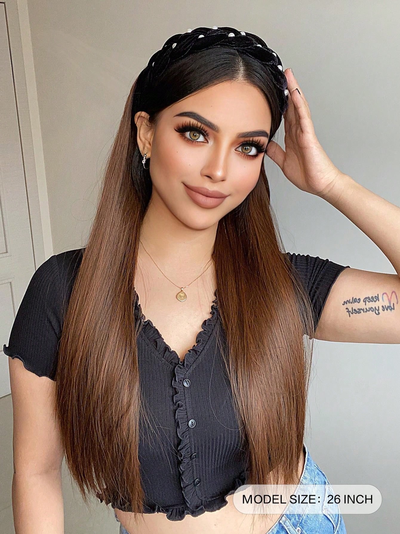 26inch Long Straight Hairpiece Removable Headband Wig Brown 'S Synthetic Cover Wig Natural Straight Natural Hairpiece Half Wig
