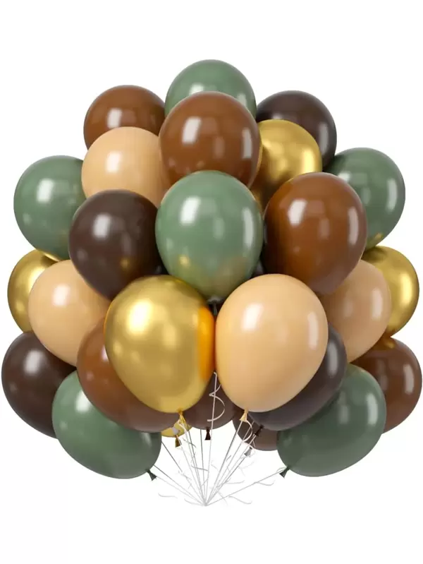 26pcs Retro Green Brown Beige Apricot Coffee Metallic Gold Latex Balloons Set for Jungle Safari Woodland Birthday Party Supplies Wedding Decorations