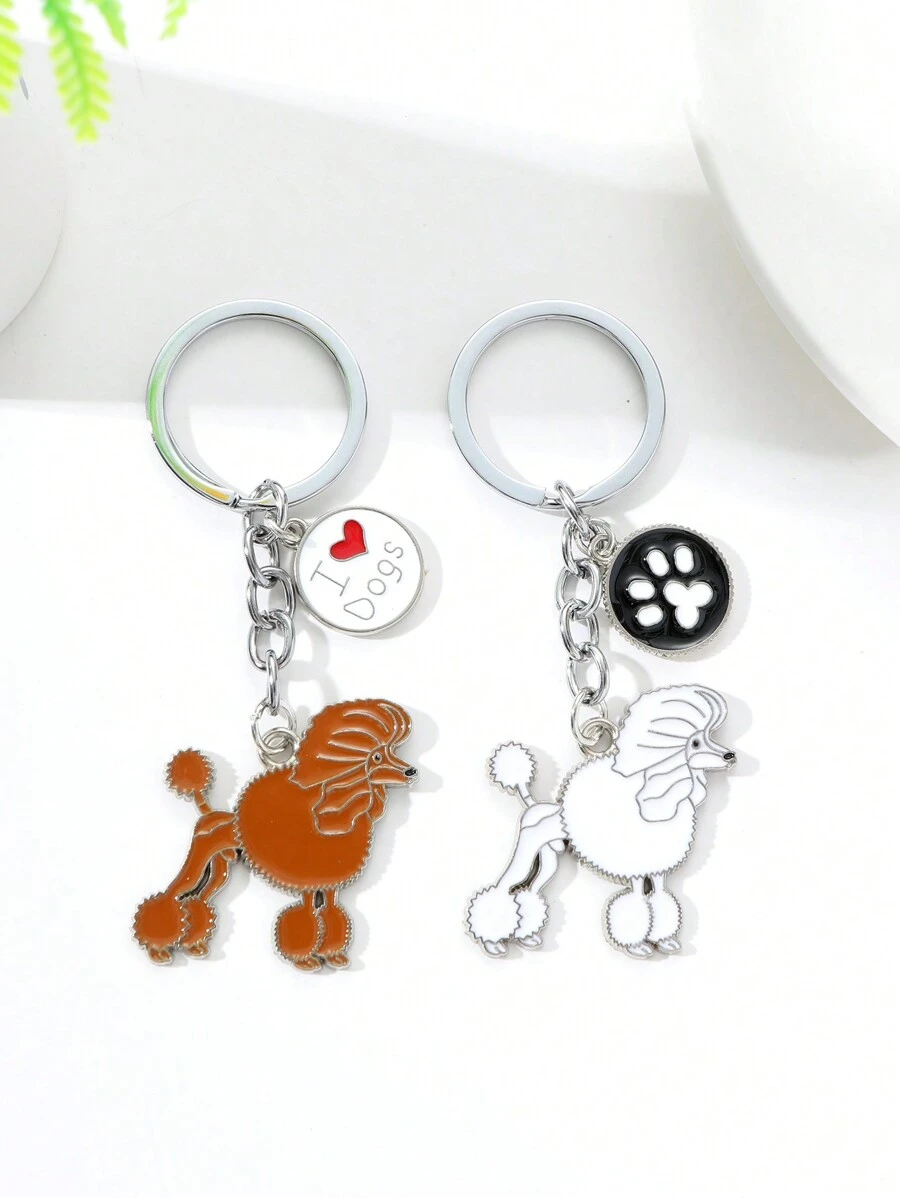 2PCS Alloy Poodle Dog Keychain Cute Animal Cartoon Pet Keychain Dog Gift For Lovers Jewelry