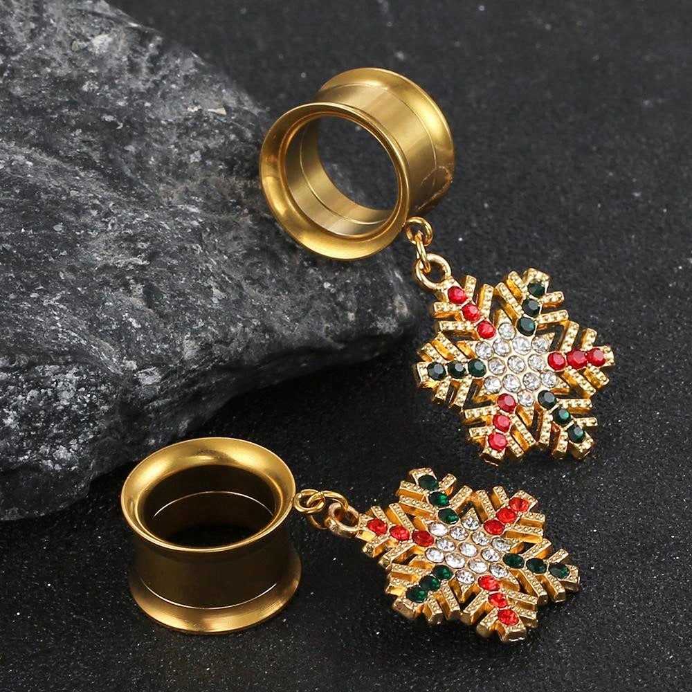 2PCS Christmas Stainless Steel Candy Cane Snowman Christmas Tree Ear Plugs Tunnels Expander Body Jewelry Piercing Earrings Gauges