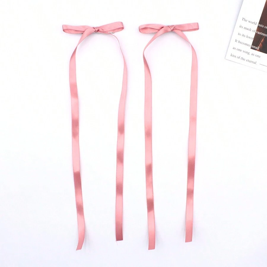 2PCS Hair Bows For Women, Black Tassel Ribbon Bowknot Hair Clips Barrettes For Girl With Small Long Tail, Solid Satin Hair Accessories