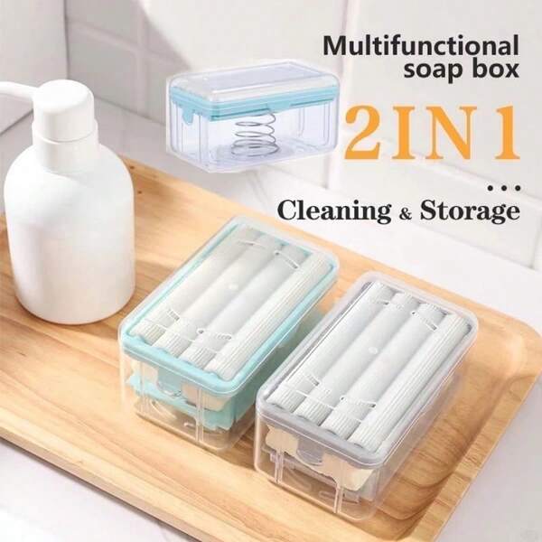 2PCS Usage Roller Type Soap Dish Holder For Bathroom Toliet Soap Box Plastic Storage Container With Drain Water Bathroom Gadgets