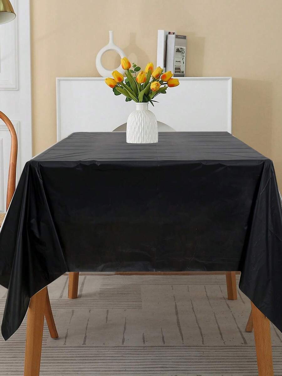 2Pcs Black PEVA Square Disposable Tablecloth, Waterproof And Oil-Proof Table Cover, Rectangle Simple Style Table Cloth, For Picnic Or Holiday Birthday Party Decor, Home Decor, Dining Table Decor, Outdoor Picnic Supplies