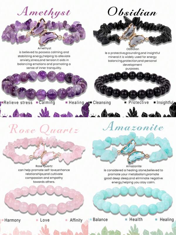 2Pcs Card Bracelet Set Natural Stone Butterfly Pendant Crystal Bracelet For Women Energy Healing Chip Stone Bracelet Set For Men Jewelry Wish Card
