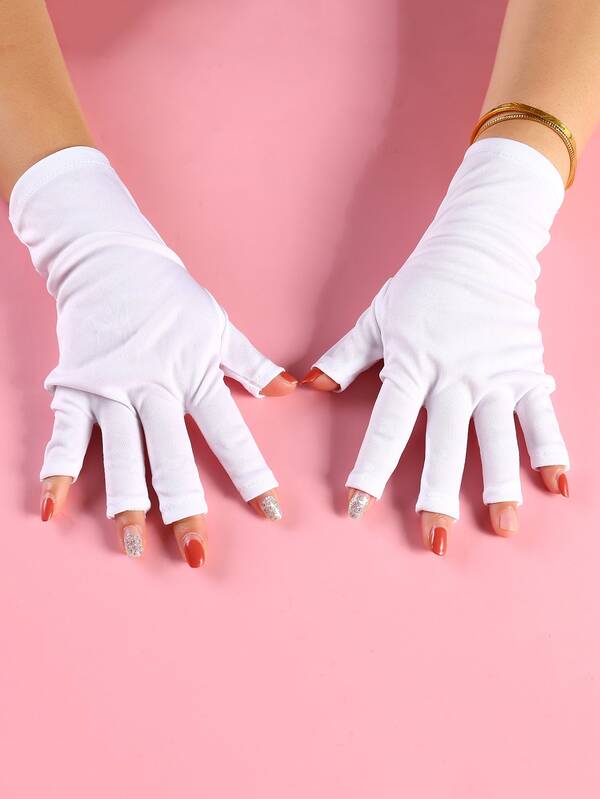 2Pcs Uv Protection Anti-Sunburn Black Half Finger Nail Art Gloves Short For Light Manicure Women Nail Fingerless Gloves