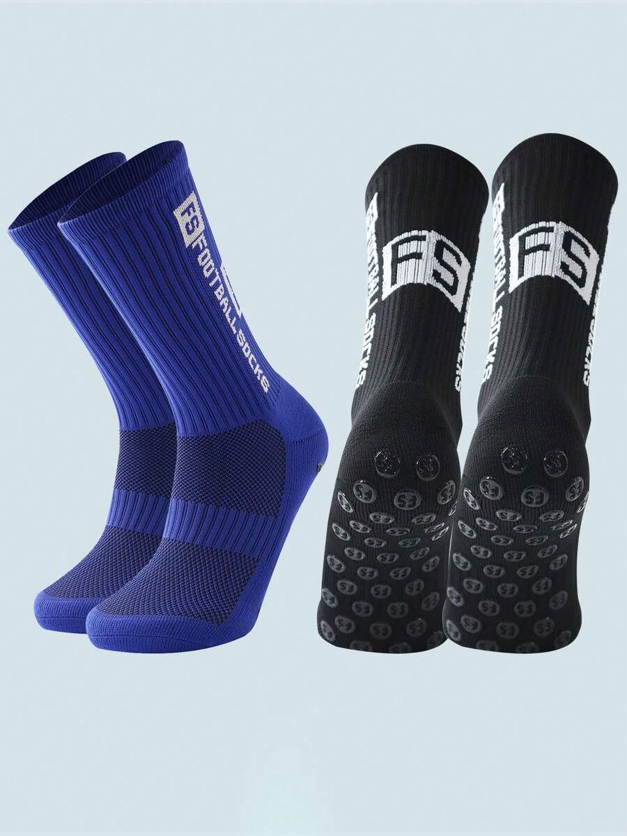 2pairs Men'S Athletic Socks With Anti-Slip Grip & Thick Cushioning For Football, Basketball, Sports