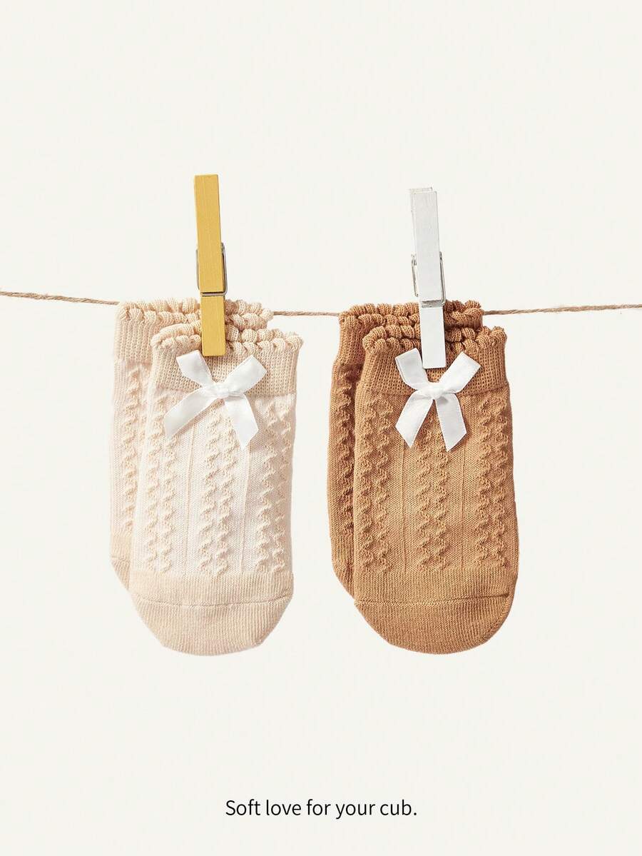 Cozy Cub 2pairs Solid Color Mesh Butterfly Bowknot Short Socks For Baby, Princess Style, Anti-Slip Design, Suitable For Spring And Summer