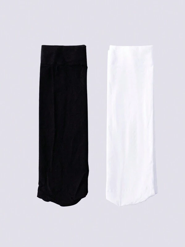ROMWE Goth 2pairs/Pack Women'S Mid-Calf Socks, Japanese Style Black Jk Series Half Tube Socks For Spring, Autumn, Match With Skirts, Daily Casual & Sports Wear