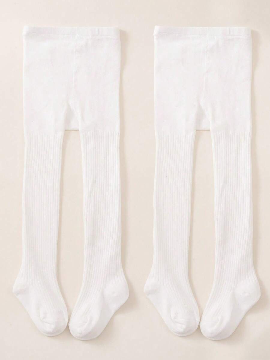 2pairs/Set Girls' White Cable Knit Tights, Soft Warm Comfortable Footed Ballet Dance Leggings For Daily Wear In Fall And Winter