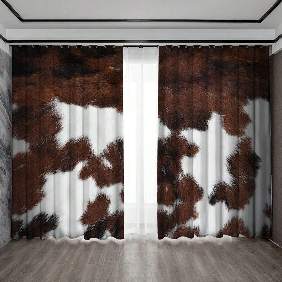 2panels Faux Animal Hair Cowhide, Modern Printed Pattern Curtains For Living Room, Sofa Backdrop, Bedroom And Corridor