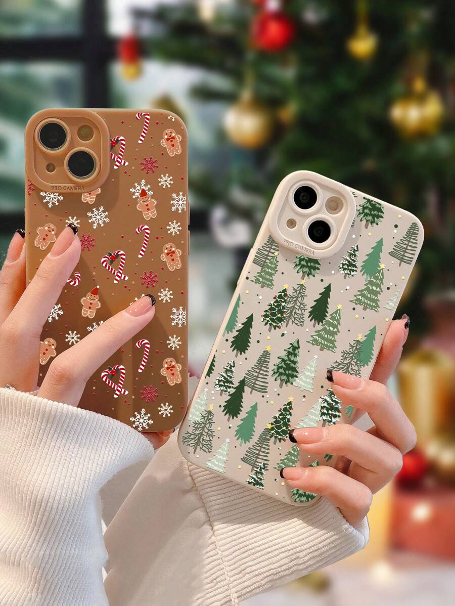 2pc Christmas Popular Pattern Liquid Silicone Mobile Phone Case Full-Body Protection Shockproof Anti-fall TPU Soft Rubber Case For Apple IPhone