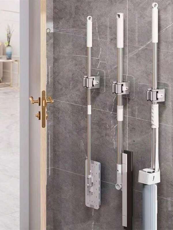 2pcs, No Punch Mop Broom Rack Hooks, Bathroom Laundry Miscellaneous Room Kitchen Household Wall Mounted Storage Hooks, Mop Clip Hooks, Miscellaneous Hooks