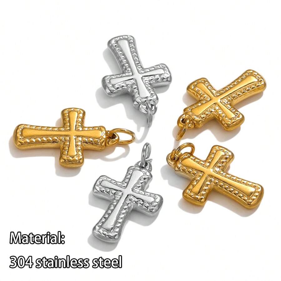 2pcs 304 Stainless Steel With Circle Cross Pendant Simple Fashion Men And Women Daily With DIY Jewelry Accessories Pendant Necklace