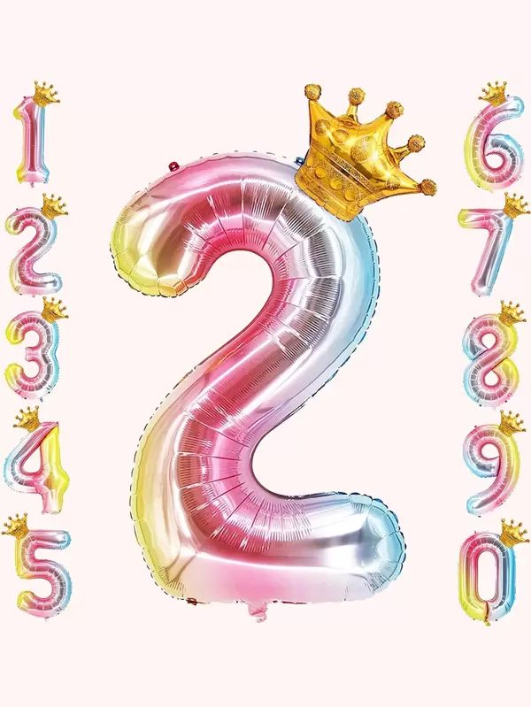 2pcs 32 Inch Number & Crown Gradient Color Party Balloon Decoration