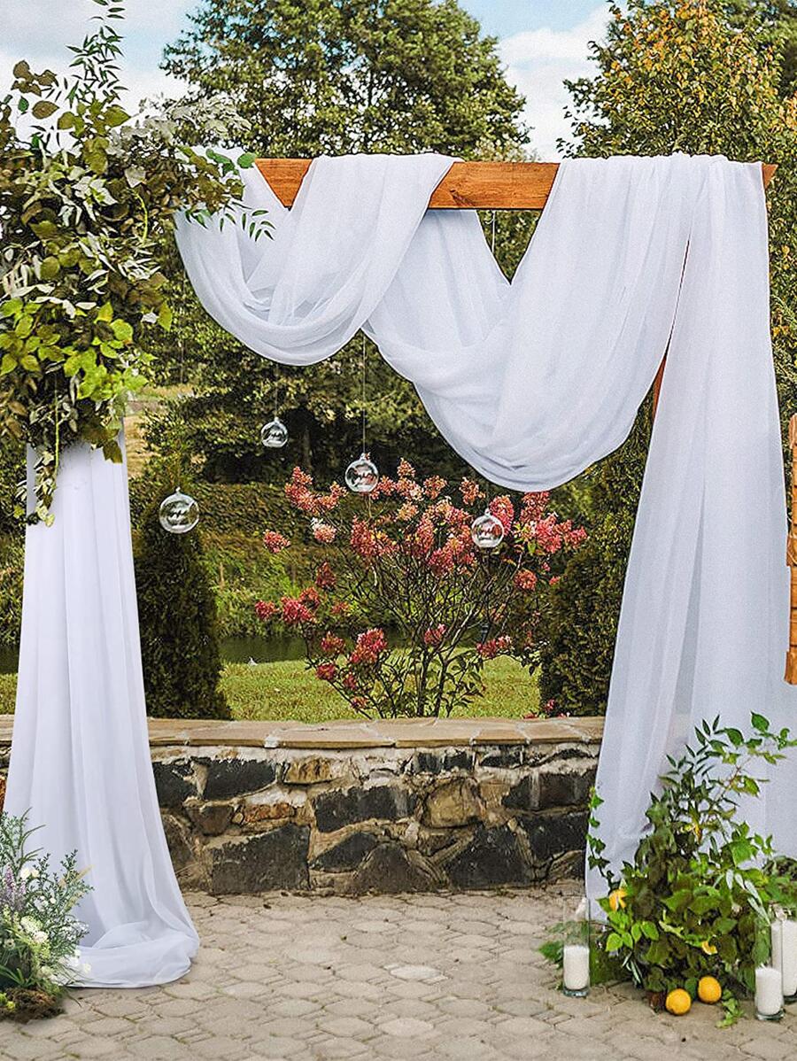 2pcs 6m White Chiffon Archway Fabric, Wedding Archway Fabric, Birthday Party Background Decoration, Polyester Romantic Party Decoration For Wedding, Wedding Party Bridal Shower Decor Room Decoration Supplies, Suitable For Wedding Archway, Stair Fence Decor, Chair Back Decoration, Sheer Mesh Door Curtain, Gauze Table Runner, Table Cover, Banquets Party Supplies