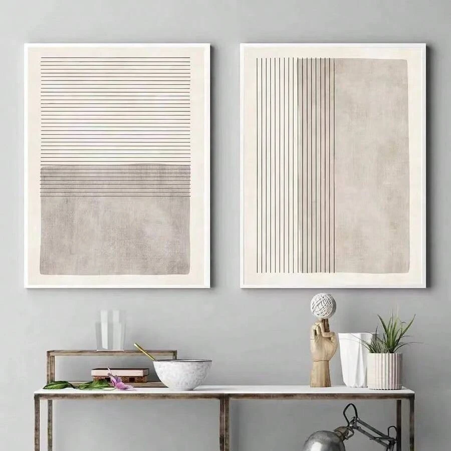 2pcs Abstract Beige Grey Poster Line Art Canvas Print Wall Art Home Decor Painting