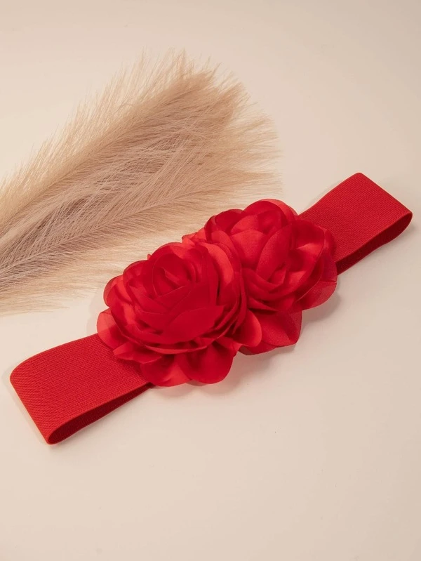2pcs Big Red Flower Design Women'S Fashionable Waist Belt