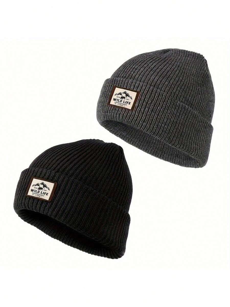 2pcs Black+Gray Unisex Knitted Hat With Wild Lifeb Logo, Y2k Style Winter Ski Beanie, Suitable For Outdoor, Cold Weather And Daily Commute