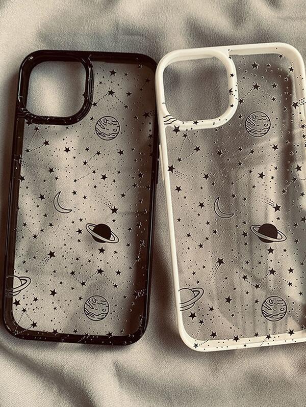 2pcs Black & White Galaxy Design Acrylic Phone Case Compatible With Iphone
