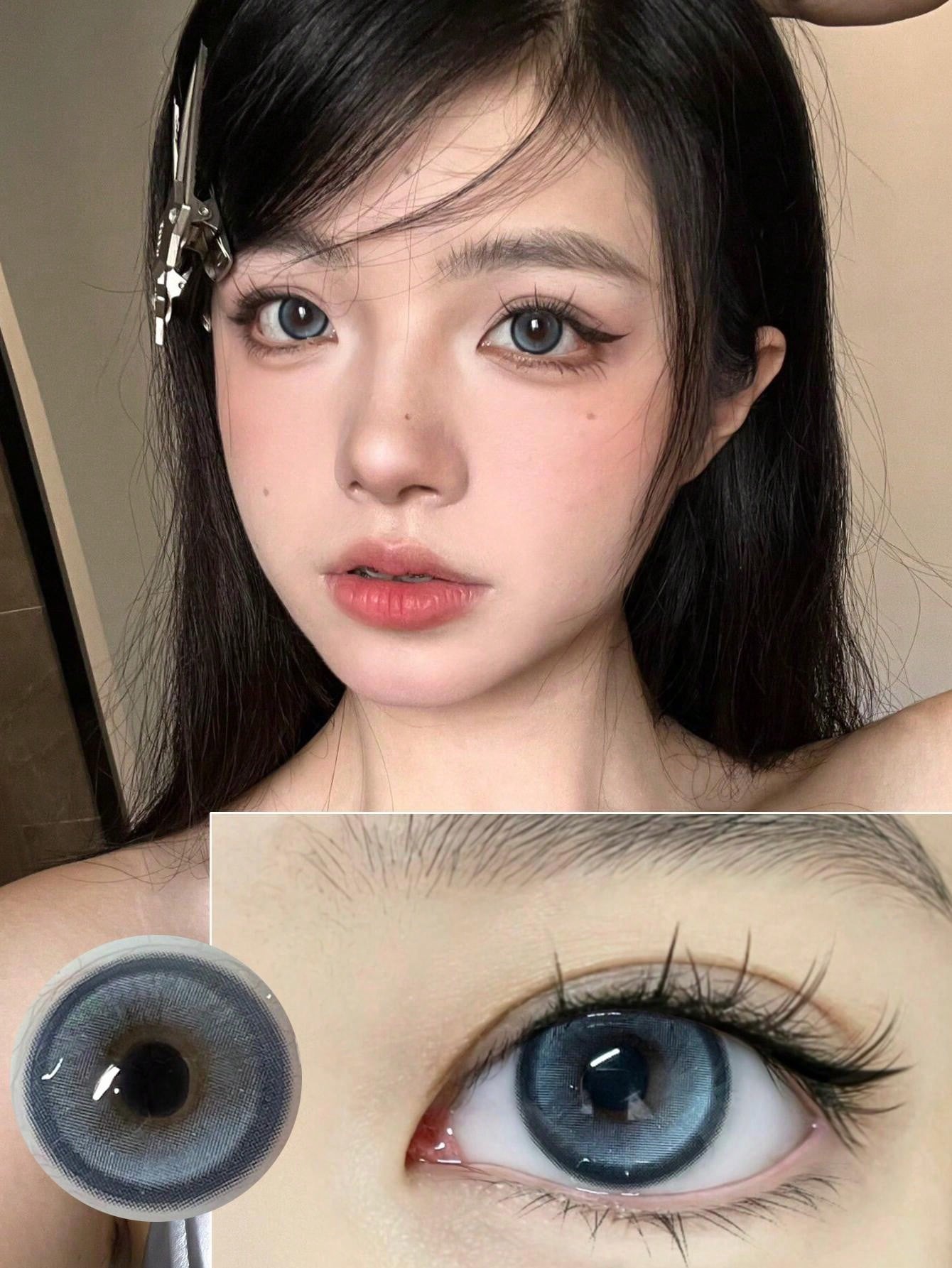 2pcs Blue Colored Contact Lenses Without Prescription, Size And Diameter Suitable For Most People, Convenient For Traveling.