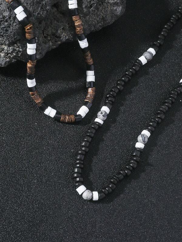 ROMWE Goth 2pcs Bohemian Vintage Style Natural Coconut Shell Beads String Stone Pendant Men's Necklace Set