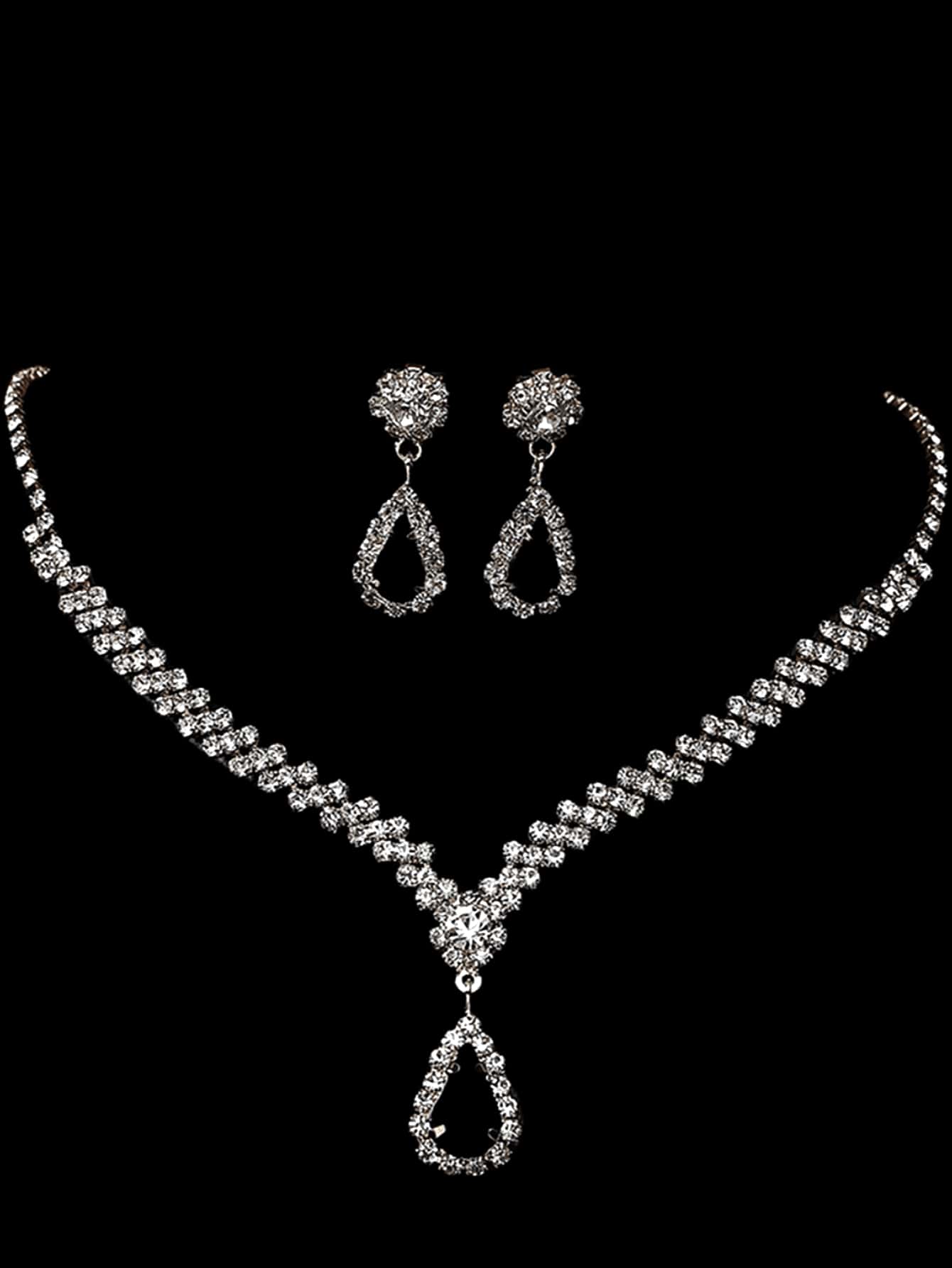 2pcs Bridal Wedding Jewelry Set For Women, Including Sparkling Diamond Full Chain Necklace And Earrings