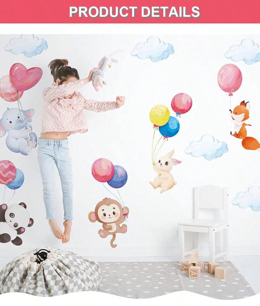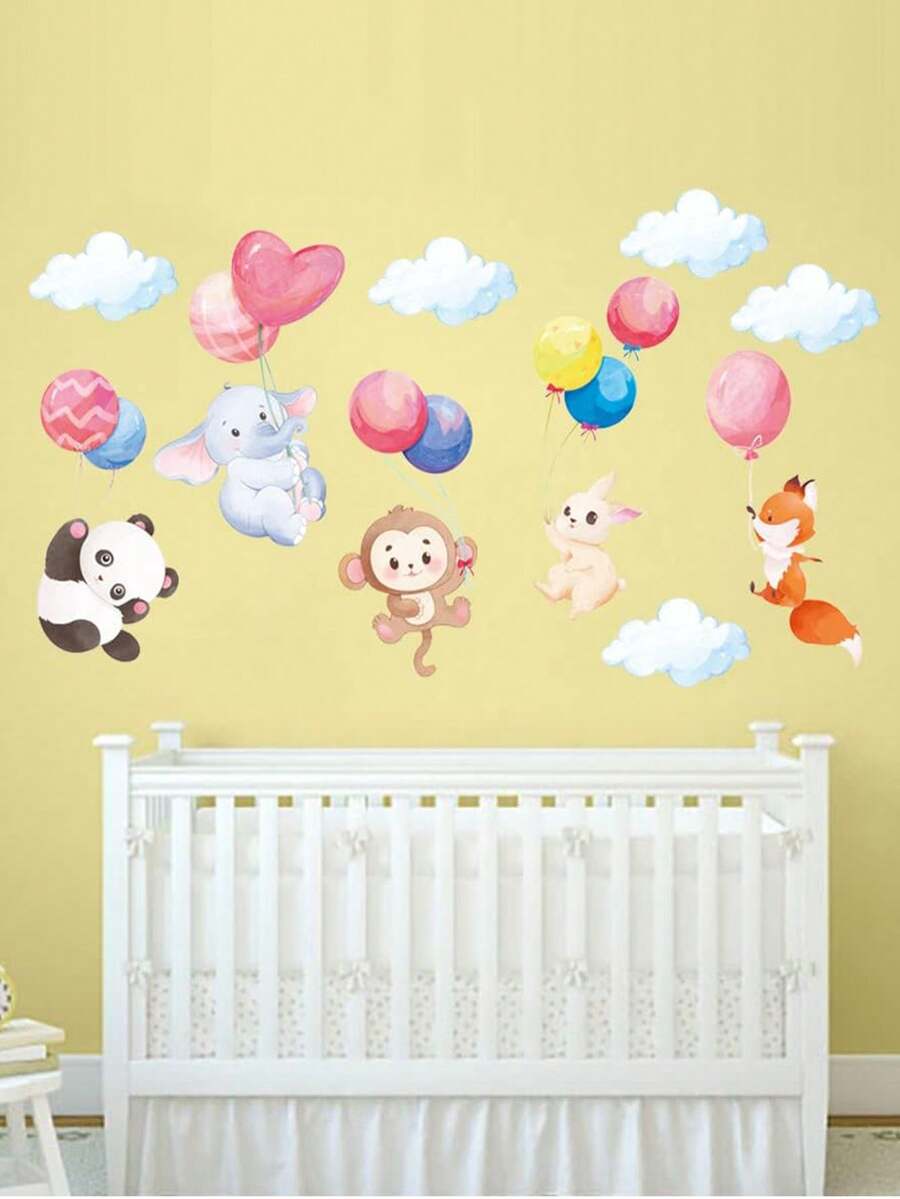 2pcs Cartoon Animal Theme Wall Stickers With Elephant, Monkey And Balloons For Kids' Bedroom & Living Room, Self-Adhesive