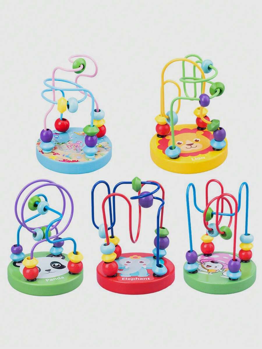 2pcs Children'S Cartoon Wooden Mini Building Blocks Around Beads & Maze Toys, Educational Toy To Exercise Children'S Hand-Eye Coordination (Random 2 Styles)