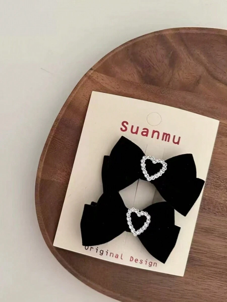 2pcs Children'S Hair Clips With Bow And Heart Shaped Decorations, For Girls
