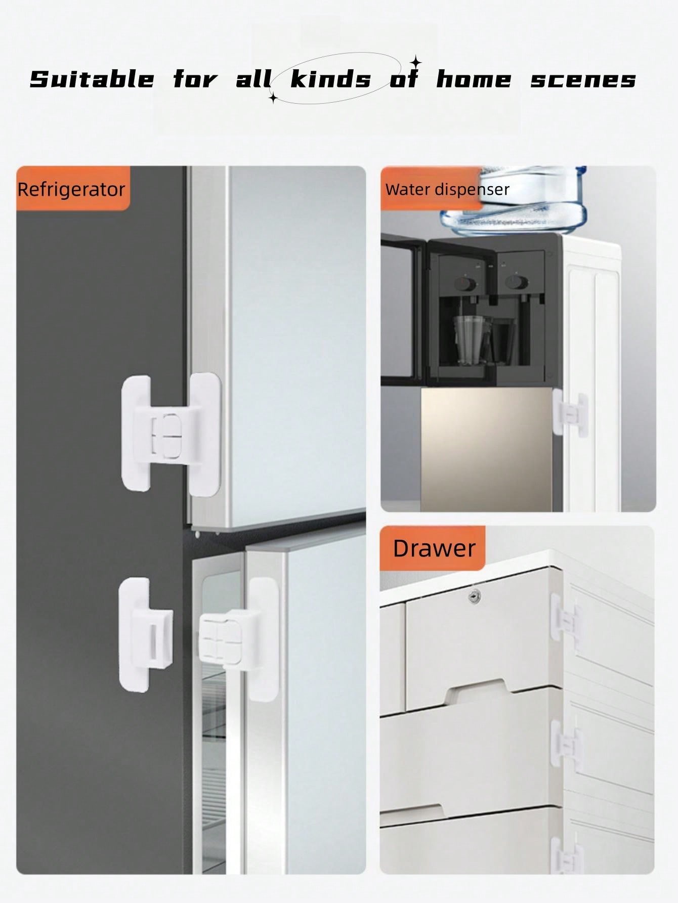2pcs Children Safety Locks, Fridge Door & Drawer Auto-lock, No Drilling Installation, Beverage Machine Door Closing Device, Baby Safety Anti-open Lock Buckle