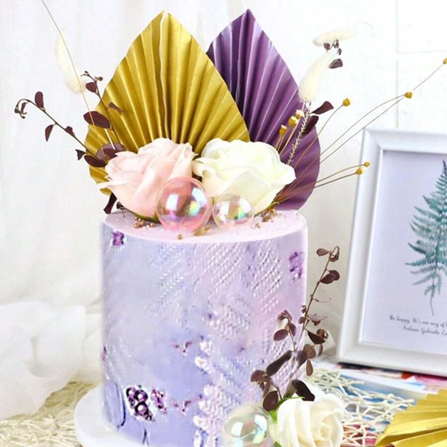 2pcs Chinese Style Birthday Cake Decoration Health Longevity Folding Screen & Butterfly Orchid Handheld Fan Accessories