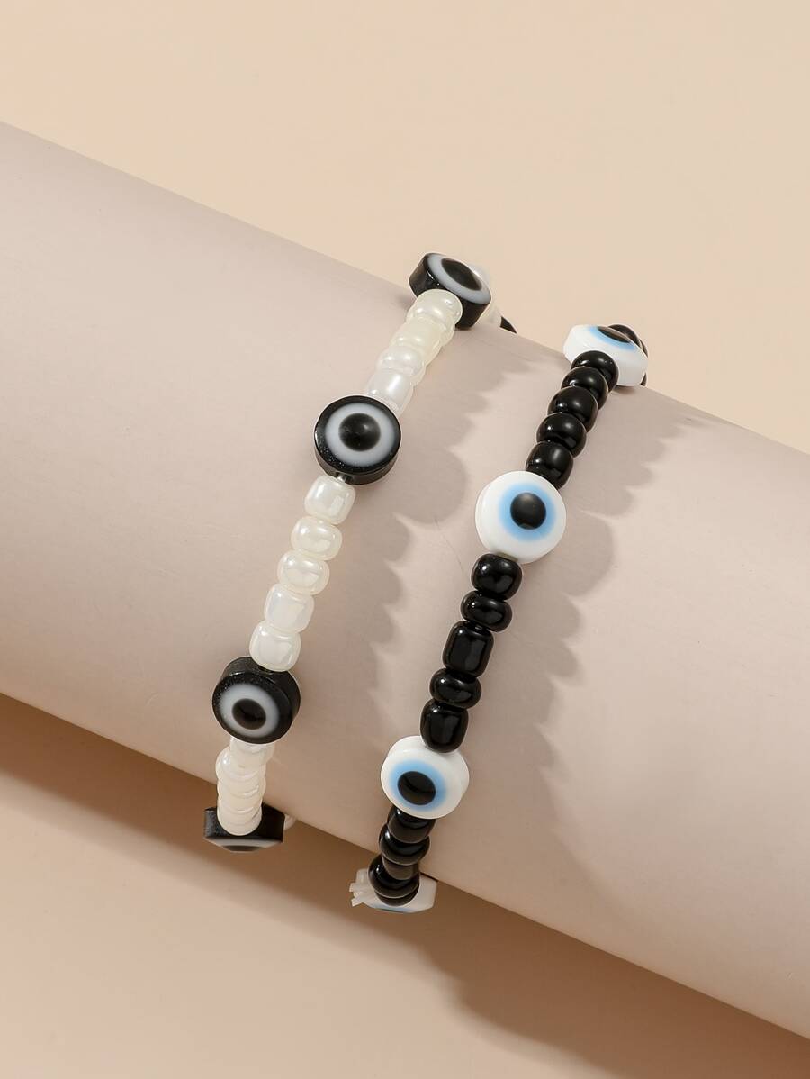 2pcs Couple Evil Eye Decor Beaded Bracelet