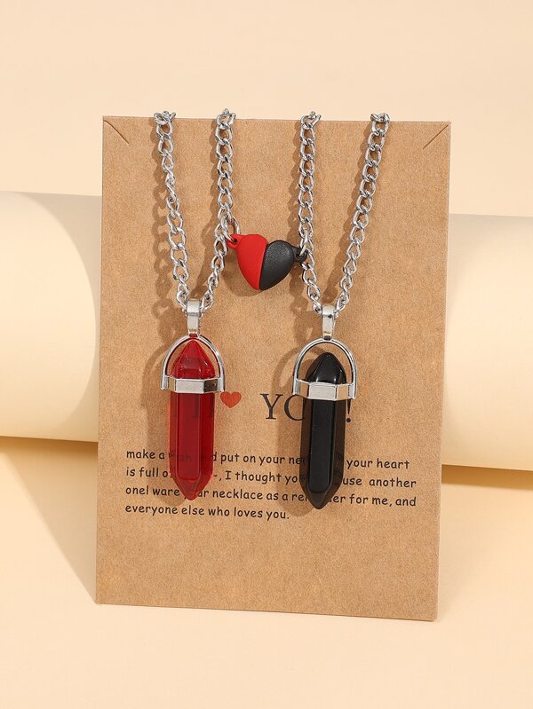 2pcs Couple Magnetic Heart & Geometric Pendant Necklace