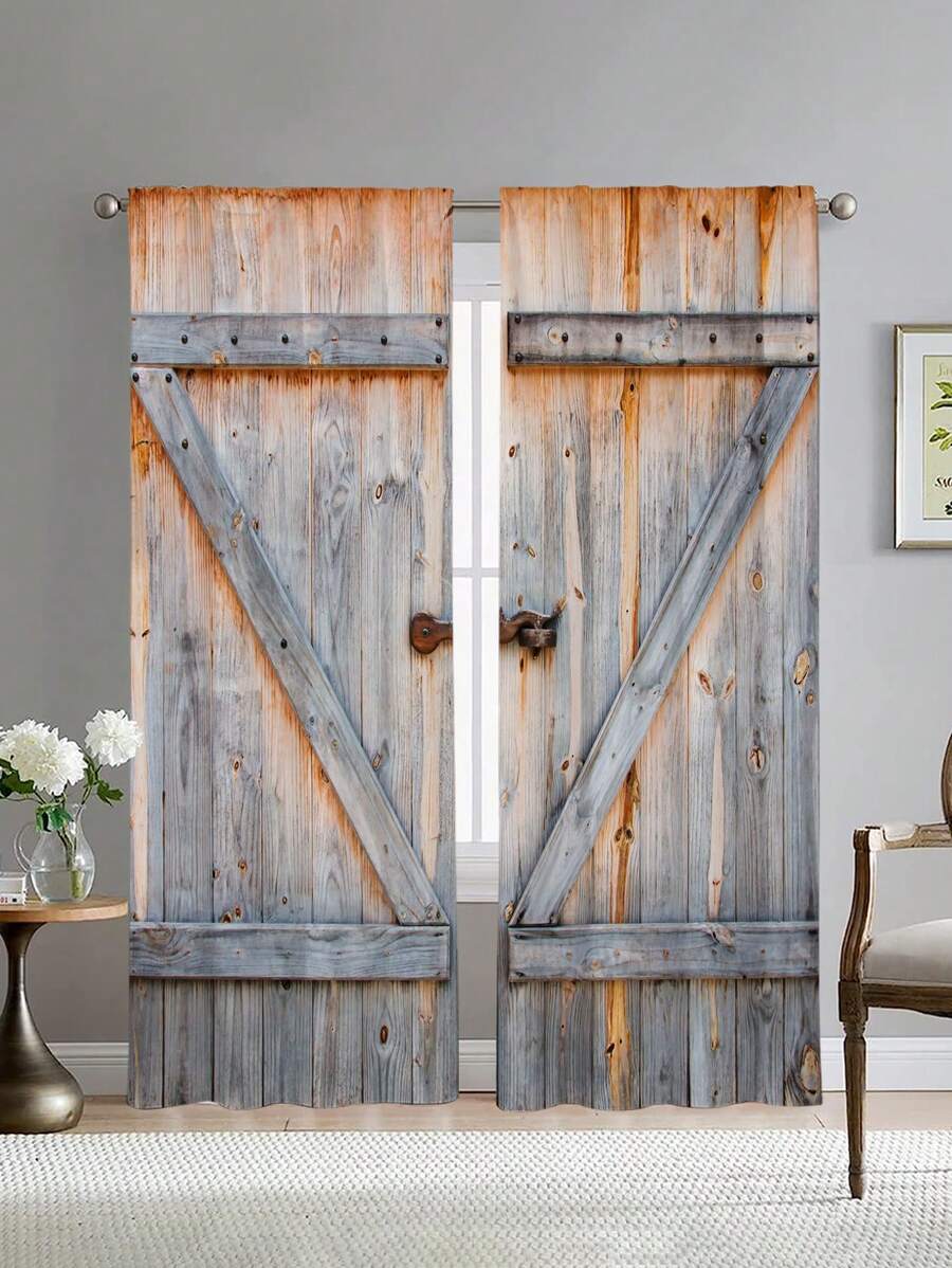 2pcs Darkening Decor Wooden Barn Door Curtains,Blackout Curtains,Refer To Bedroom Office Kitchen Living Room Study Home Decor