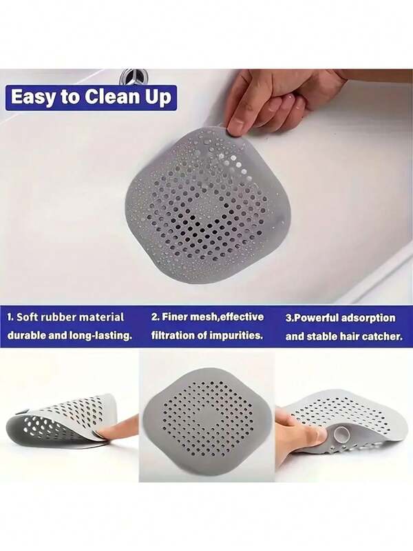 2pcs Drain Hair Catchers With Suction Cups, Durable Silicone Square-Shaped Drain Cover For Showers, Anti-Clogging Drain Strainer For Floor And Bath Outlets, For Bathroom Bathtubs And Kitchens, Suitable For Hotels/Restaurants/Businesses