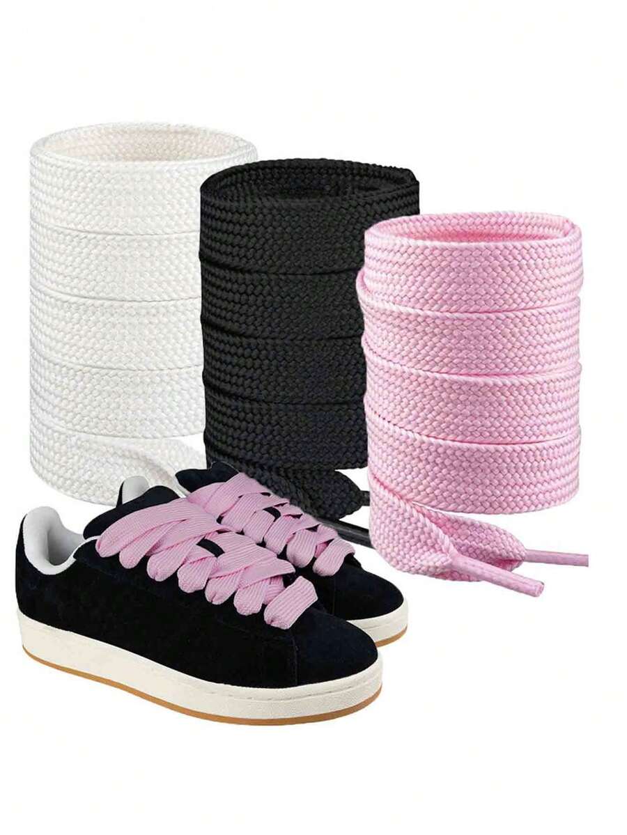 2pcs Extra Wide And Thick Flat Shoelaces, Replacement Shoe Laces For Sports Shoes,Belt,Shoes And Boots Accessories,For Women Men Sneakers Shoes Men Trainers Running Shoes Summer,Sneaker Accessories, Solid Color Design, Reinforced Construction, Active Lifestyle,1pc