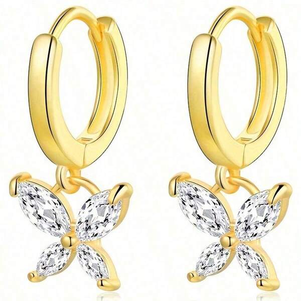 2pcs Fashionable & Creative Butterfly Pendant Circle Earrings With Stone, Hypoallergenic, Perfect For Festival & Christmas Gifts