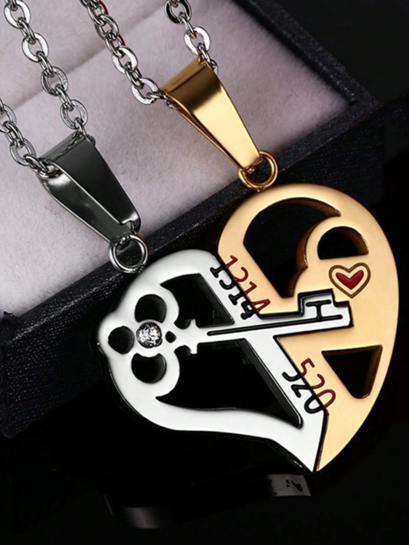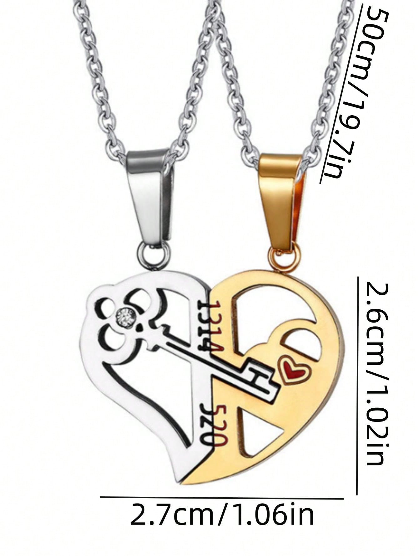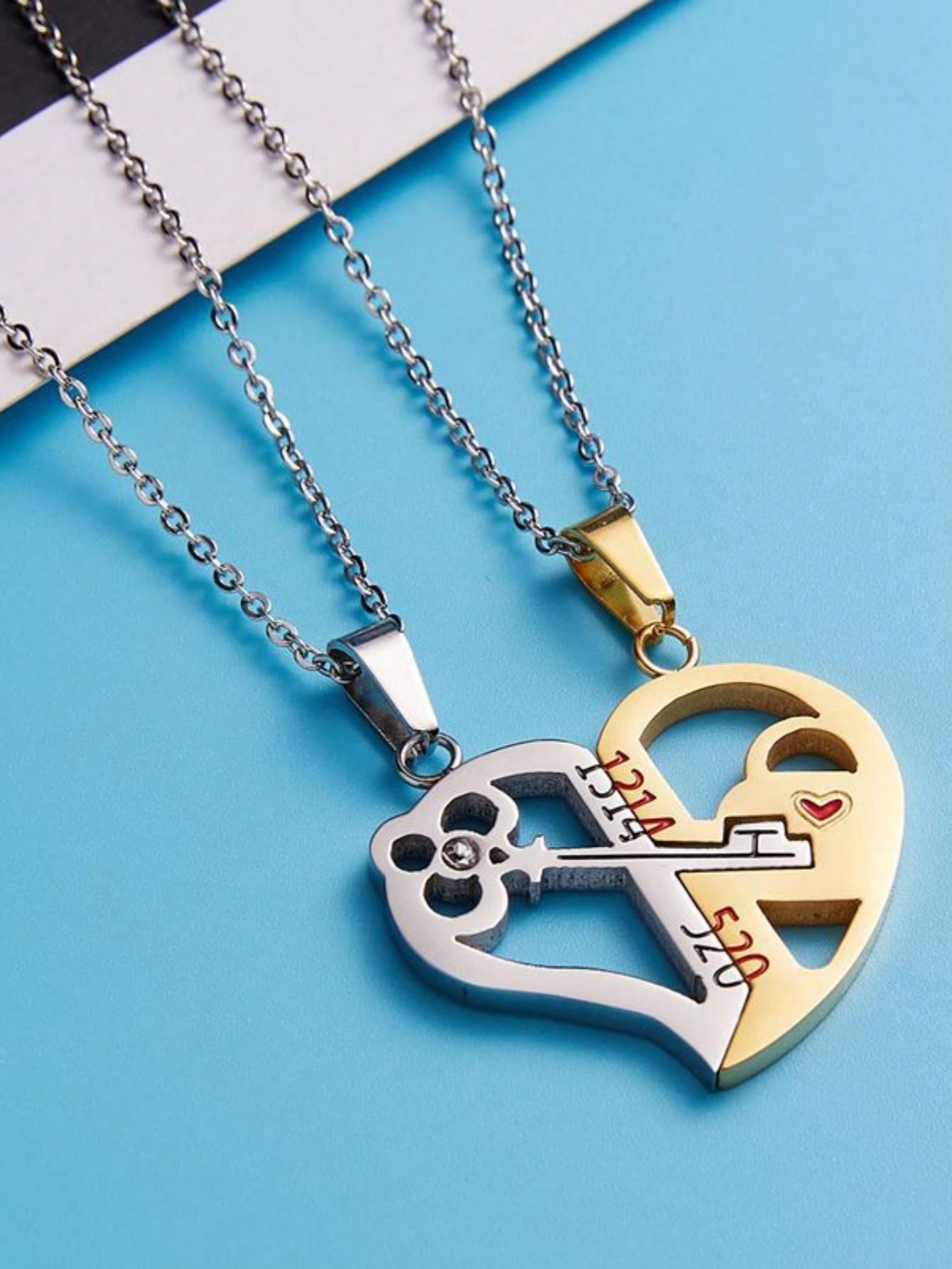 2pcs Fashionable Couple Necklace With Key Pendant That Interlock, Unique Design Heart-Shaped Valentine'S Day Gift Jewelry