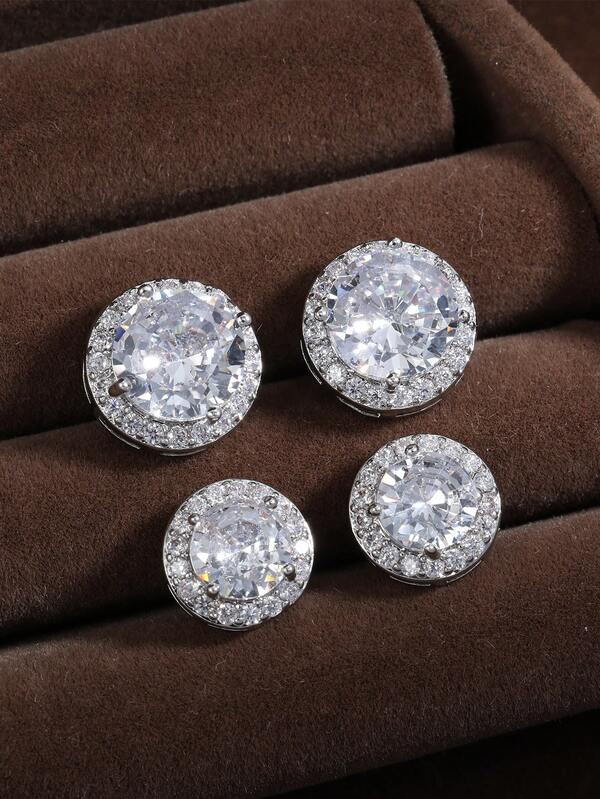 2pcs Fashionable Simple Style Cz Decor Round & Cube Shaped Stud Earrings For Daily Wear