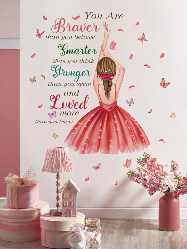 2pcs Figure & Slogan Graphic Wall Sticker