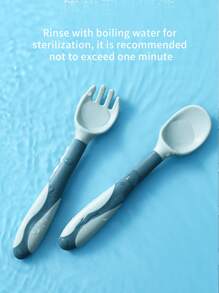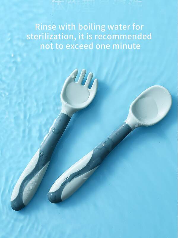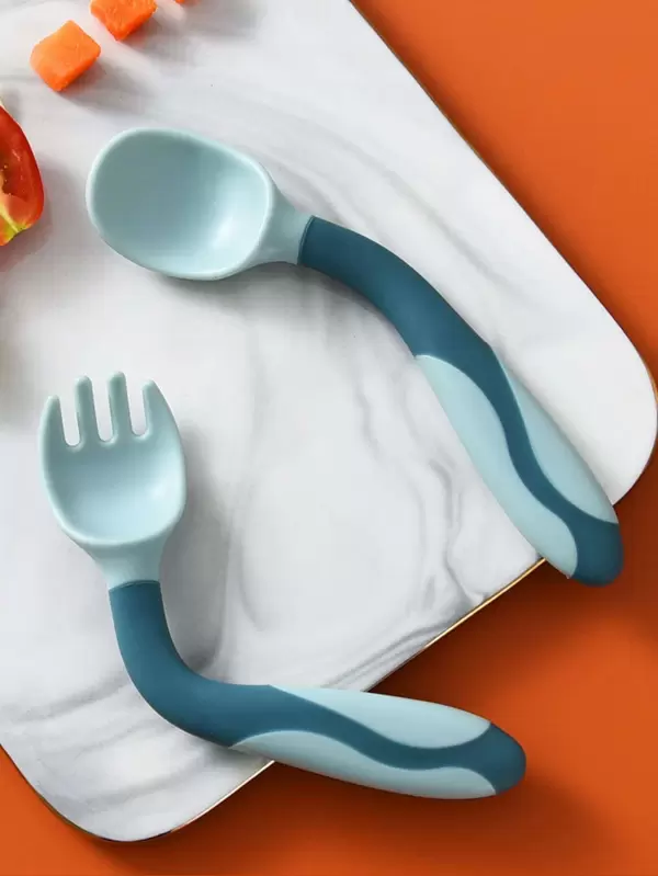 2pcs Flexible Silicone Fork & Spoon Set, 360 Degree Bendable Cutlery For Children