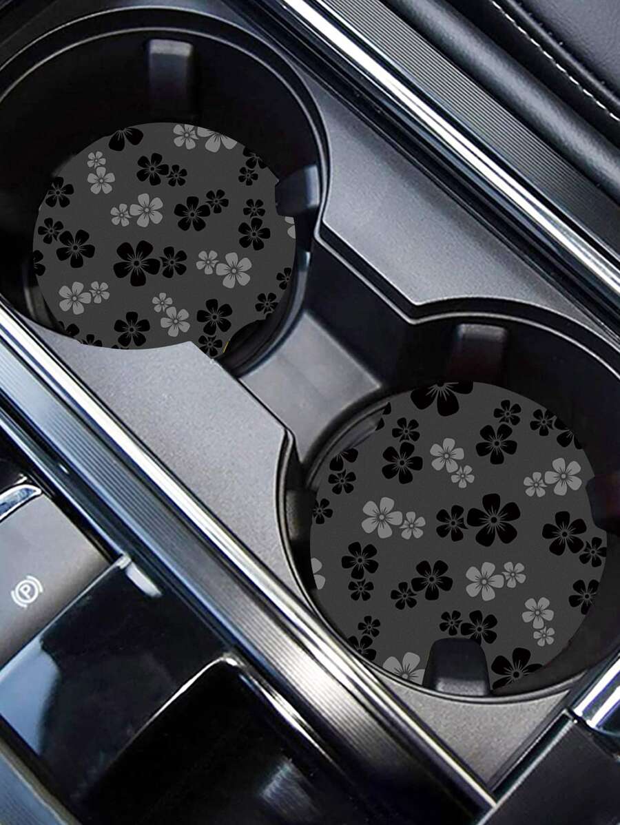 2pcs Flower Print Car Coaster