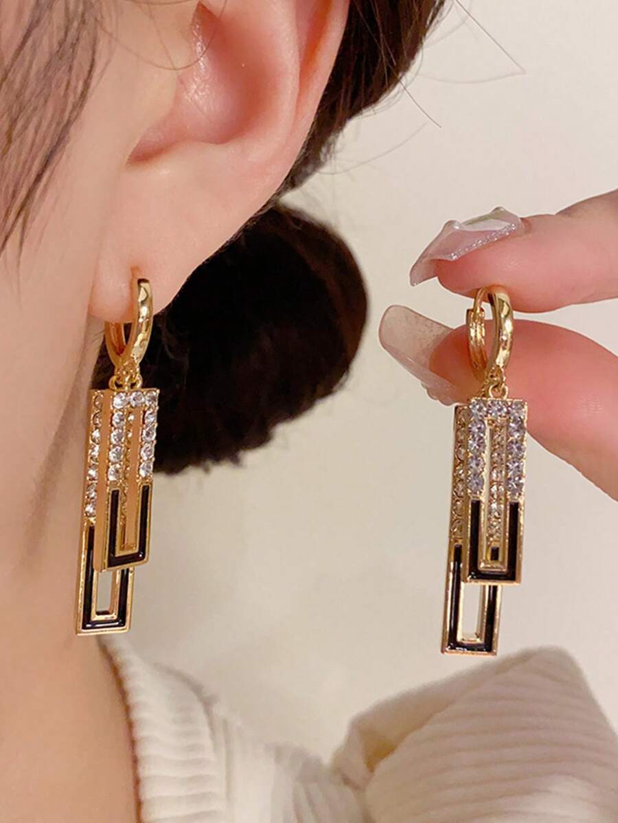 2pcs French Fashion Minimalist Square Cubic Zirconia Earrings, Suitable For Party