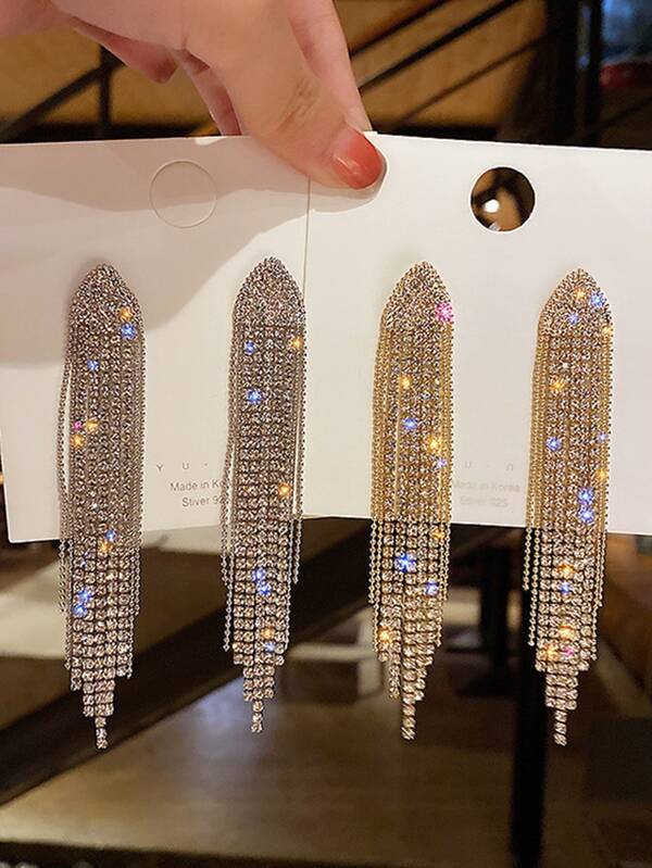 2pcs Full Rhinestone Detail Women's Earrings - Fashionable Long Fringed Drop Earrings