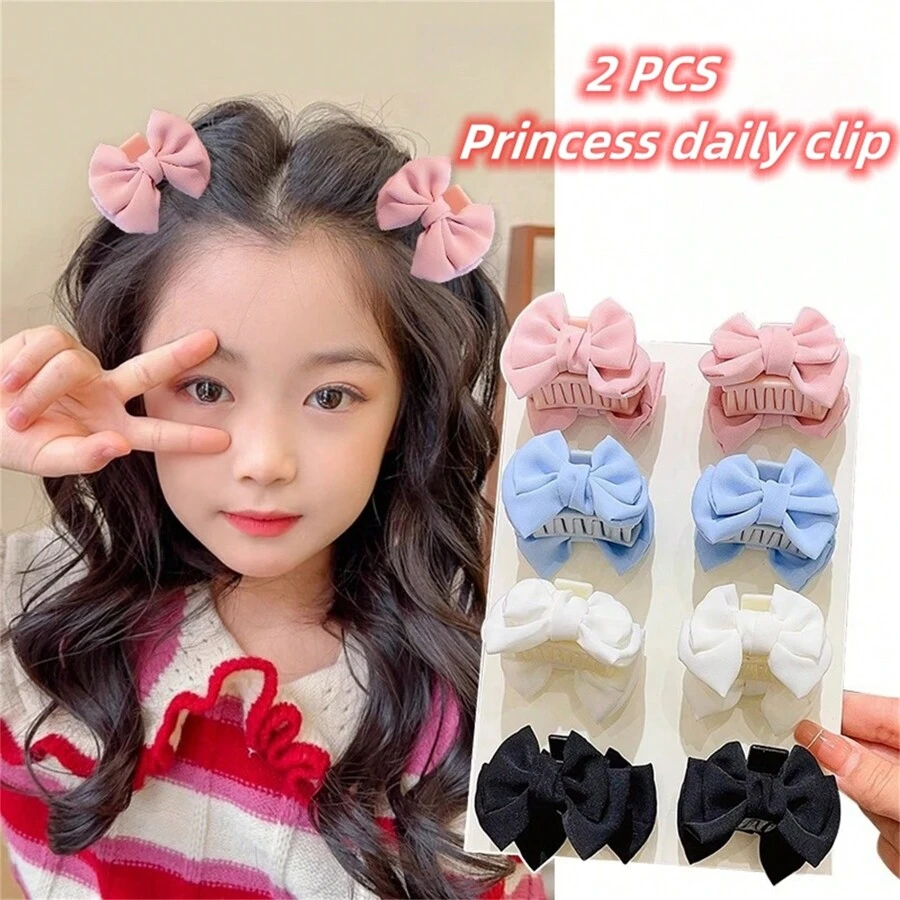2pcs Girls' Small Size Bow Hair Clips, Top Clip & Side Clip For Bangs, Daily Use