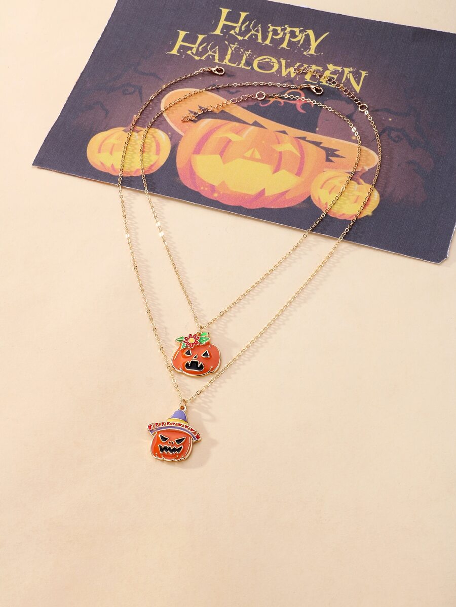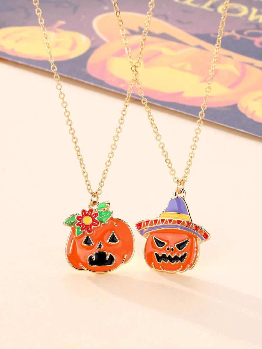 2pcs Girls Halloween Pumpkin Charm Necklace