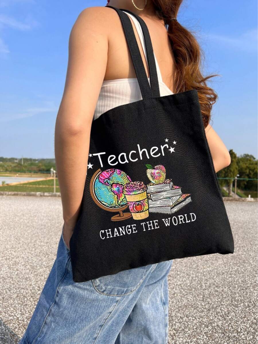 2pcs Globe Alphabet Print Shopping Tote Bag with Zipper and Lightweight Travel Cosmetic Bag Gift Bag, Great Gift for Women, Mom, Teacher, Friends, Wedding, Bridesmaid, Multipurpose Organizer