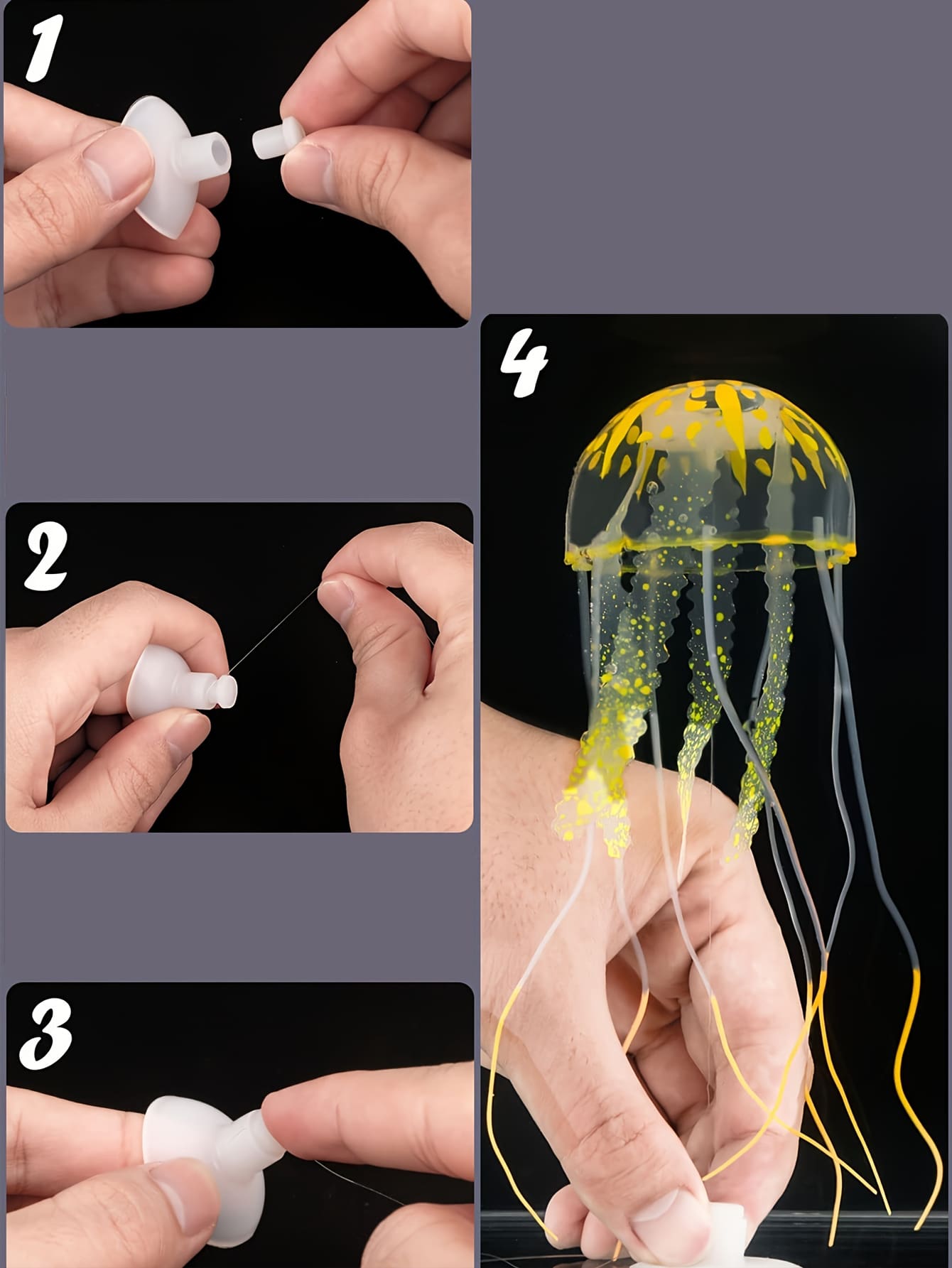 2pcs Glowing Silicone Fake Jellyfish (Blue And Purple)Artificial Ornaments For Aquarium Fish Tanks Landscaping Decoration